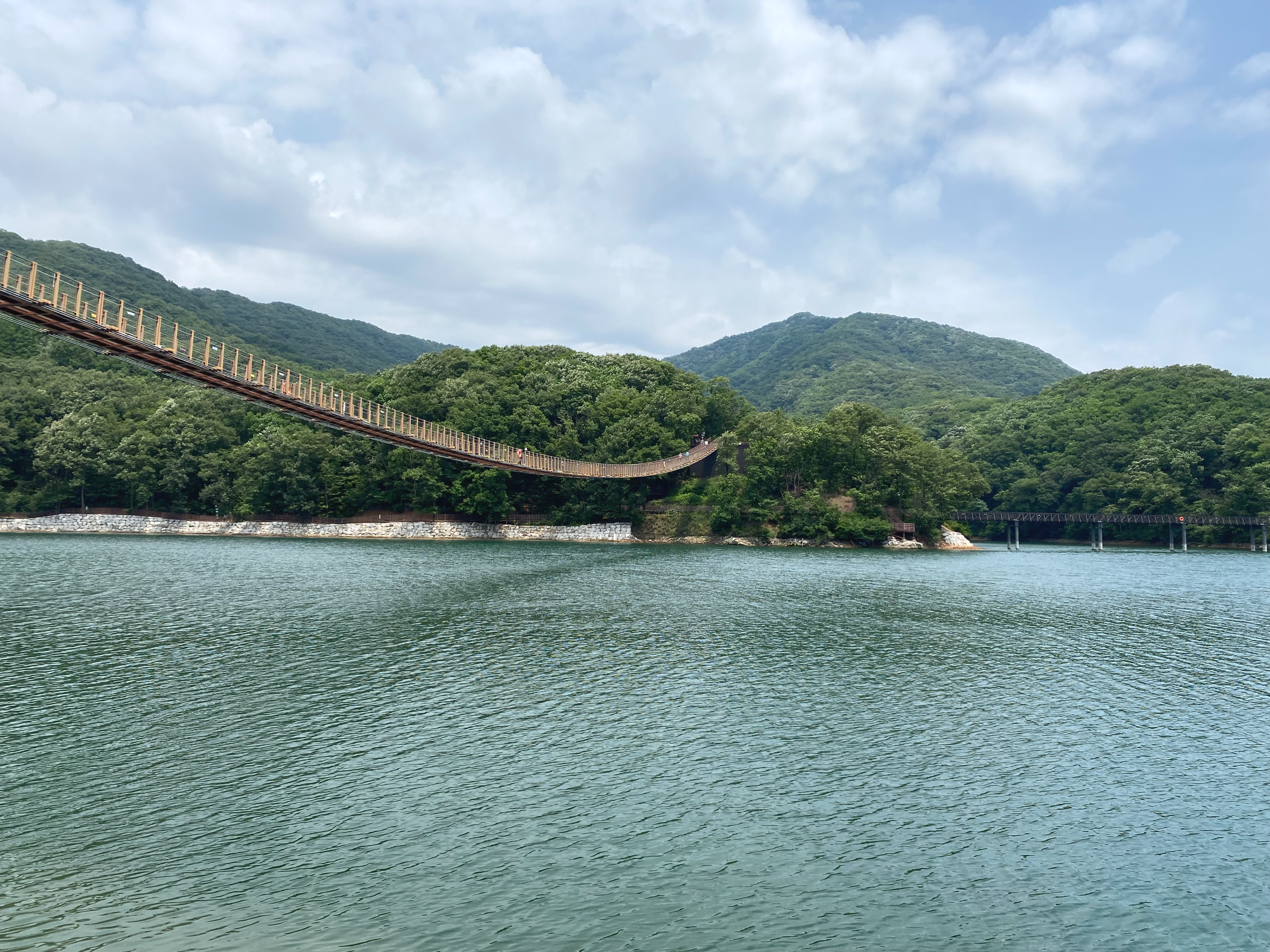 파주 마장호수는 서울과 근접하고, 둘레길이 잘 되어 있어, 부모님 모시고 혹은 지인들과 바람 쐬러 가는 곳이에요. 30도 이상의 더위로 한참 찜통이었는데, 어제와 오늘 새벽에 비가 오고, 약간은 구름이 낀 오늘 잠시 다녀왔어요. 햇볕이 강렬하지 않고 선선하게 불어주는 바람 덕분에 쾌적하게 둘레길 한 바퀴 돌고 왔어요.